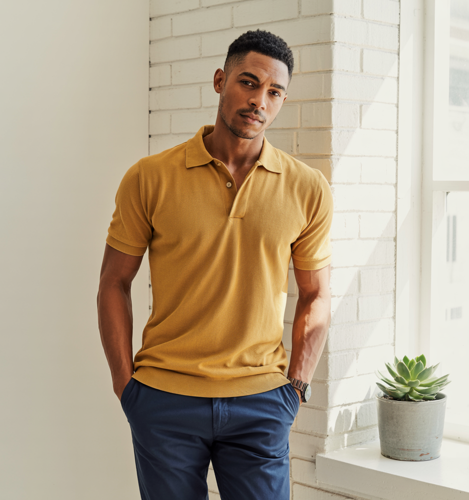 - Outfit Idea: A mustard sweater over a navy collared shirt with slim-fit jeans for a polished autumn style